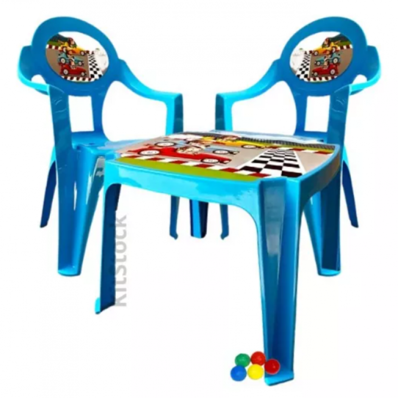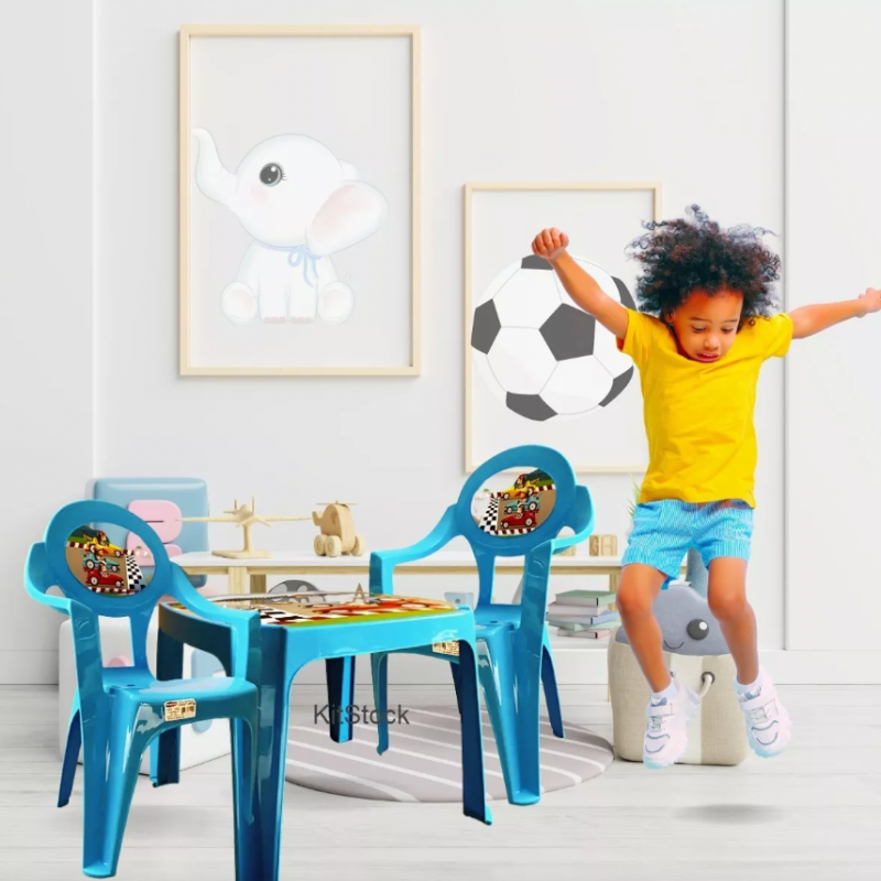 2 ta stulli bolalarning rangli ko'k avtomobili bilan bolalar o'quv stol dasturi