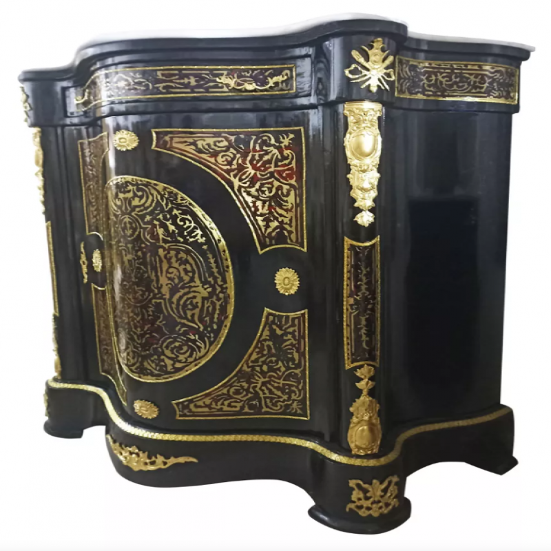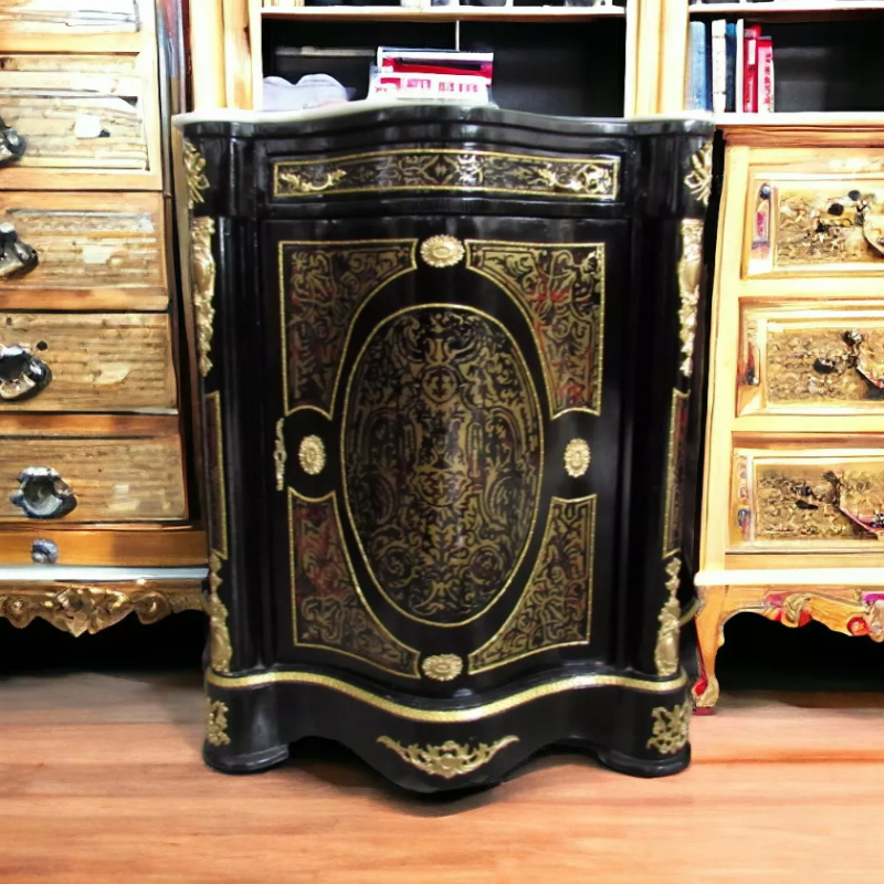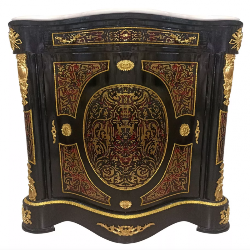 Ushbu nomaqbul oddiy mebeldan ancha ko'p; Bu ta'm va eksklyuzivlikning ifodasidir. Ajoyib marquety - bu markaziy nuqta va bronza tafsilotlari bu bitta bo'lakka boylik qo'shadi.